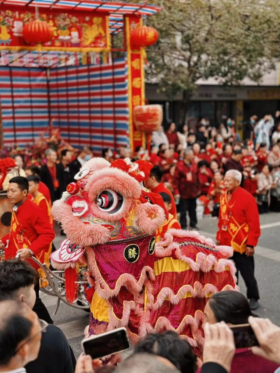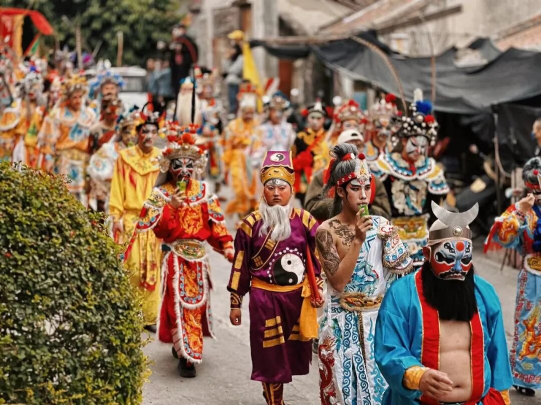 此时的巡游已经开始,远远望着就能感受到澎湃震撼,一路上有鞭炮声不断,你将看到长达几公里的游神队伍,能看到舞狮还有最近火出圈的英歌舞,万人巡游展现千年古县魅力,游行队伍场面壮观,锣鼓英歌浩浩荡荡,堪称潮汕最大型的“营老爷”,感受潮汕的传统文化氛围;