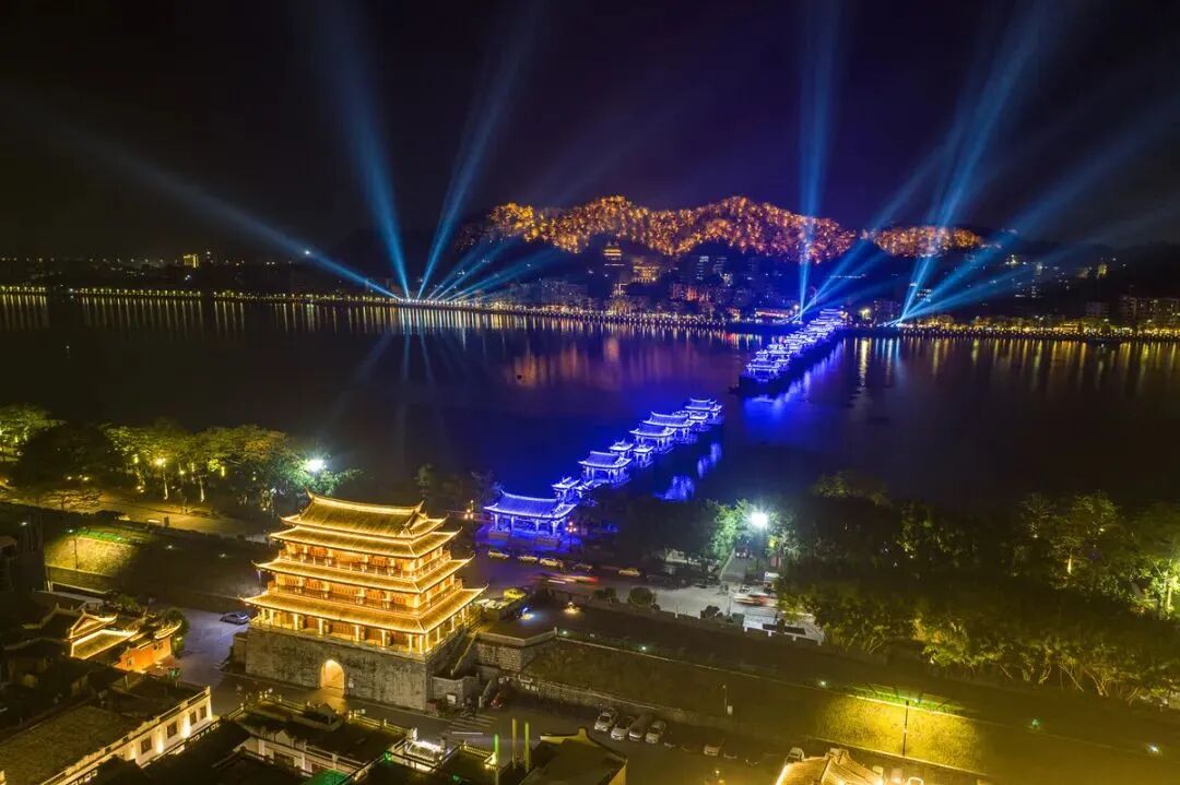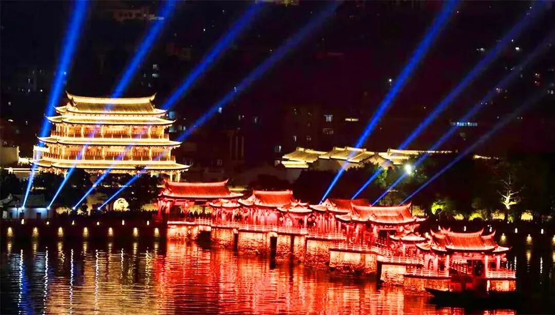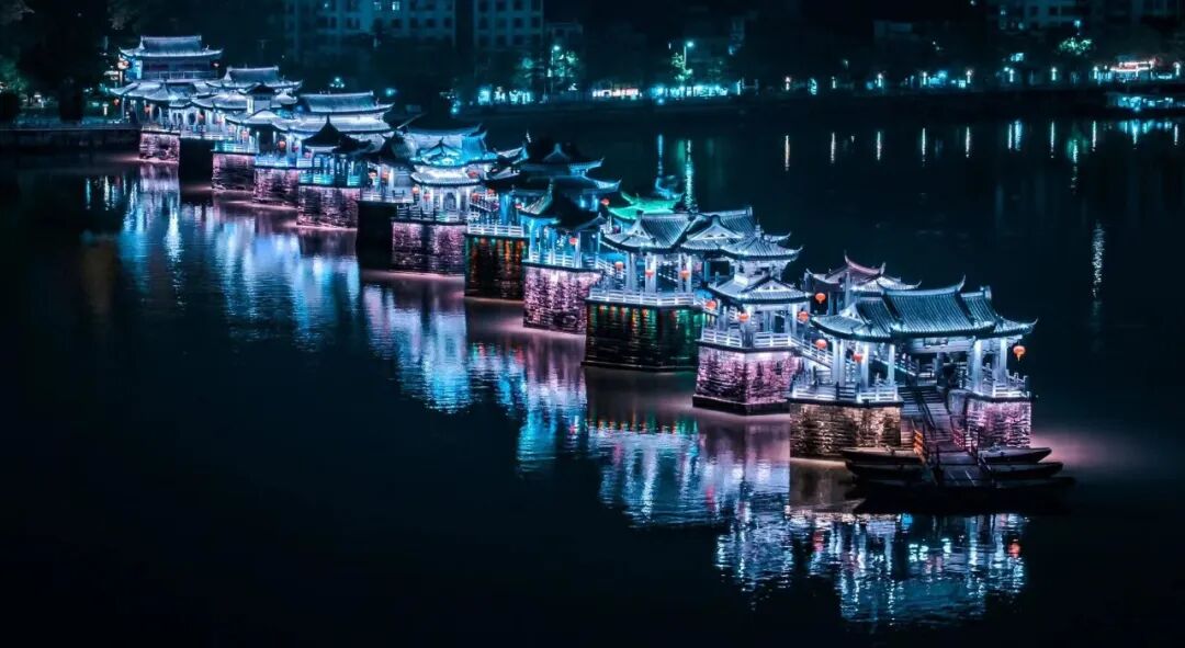 左右,欣赏广济桥灯光秀