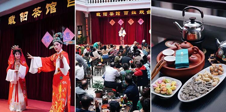 坐在茶馆内喝茶聊天、观赏潮剧、听潮人讲古是一种无比美妙的体验,宛如时光倒流,回到旧时潮州,感受她昔日的繁华。有潮剧、潮州弦诗乐、琵琶、古筝、民国风情歌等。