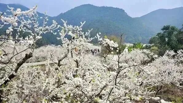 如今,这漫山遍野的梅树已渐入佳境。从远处看,梅花似一片雪海,风吹飘香。从近处看,花儿争艳,蜂儿翻飞,如诗如画,非常适合到这里写生、摄影甚至拍婚纱照。