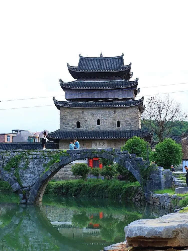 进村第一站是建于400多年历史的文昌阁,气势恢宏,诉说着历史的积淀与荣光。穿过【文昌阁】便来到了步瀛桥。南宋年间的老古董,半圆拱跨在谢沐河上。三拱两墩,站桥上跺跺脚,感觉整座桥都在嗡嗡回应你;跨过【步瀛桥】,漫步在古风犹存的上甘棠,那遍布全村的青石板巷道,具有典型特色的湘南民居,令人流连忘返。