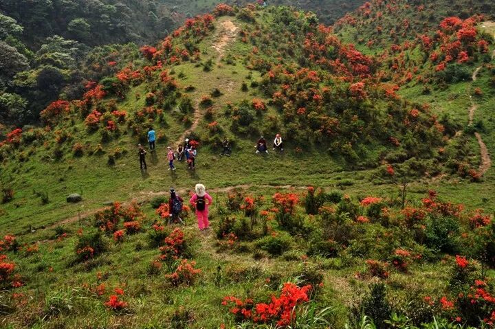 左右抵达山顶,欣赏漫山遍野的杜鹃花